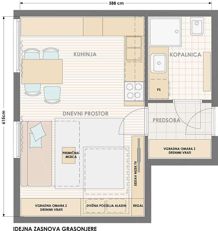 Garsonjera velikosti 45m2